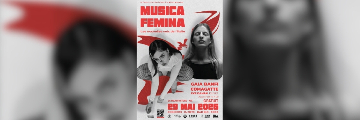 Dans le cadre de la Biennale d’Aix, La fonderie-Aix et Les Femmes S’en Mêlent présentent une soirée inédite dédiée à l’imaginaire et à la culture italienne, avec la découverte de jeunes artistes femmes contemporaines : Gaia Banfi avec sa poésie musicale qui mêle chanson, pop et électronique, et Comagatte et son rap incisif, gouailleur et engagé.