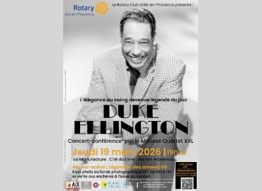 Concert - Exposition | Le Rotary Club d’Aix-en-Provence propose une soirée exceptionnelle dédiée à Duke Ellington, figure mythique du jazz.