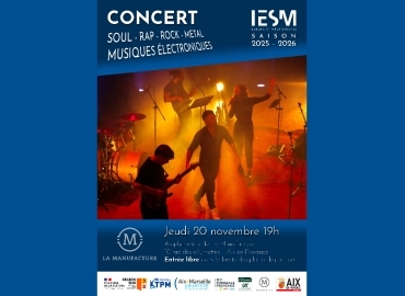 Musique | Les élèves du Diplôme d’État Musiques Actuelles Amplifiées de l’IESM se produisent en concert à l’amphithéâtre de la Manufacture. Futurs professeurs, ils révèlent leur talent et explorent un large répertoire, de la Soul au Metal, en passant par le Rap, le Rock, le Blues et l’électro, offrant au public découverte et rencontre musicale.