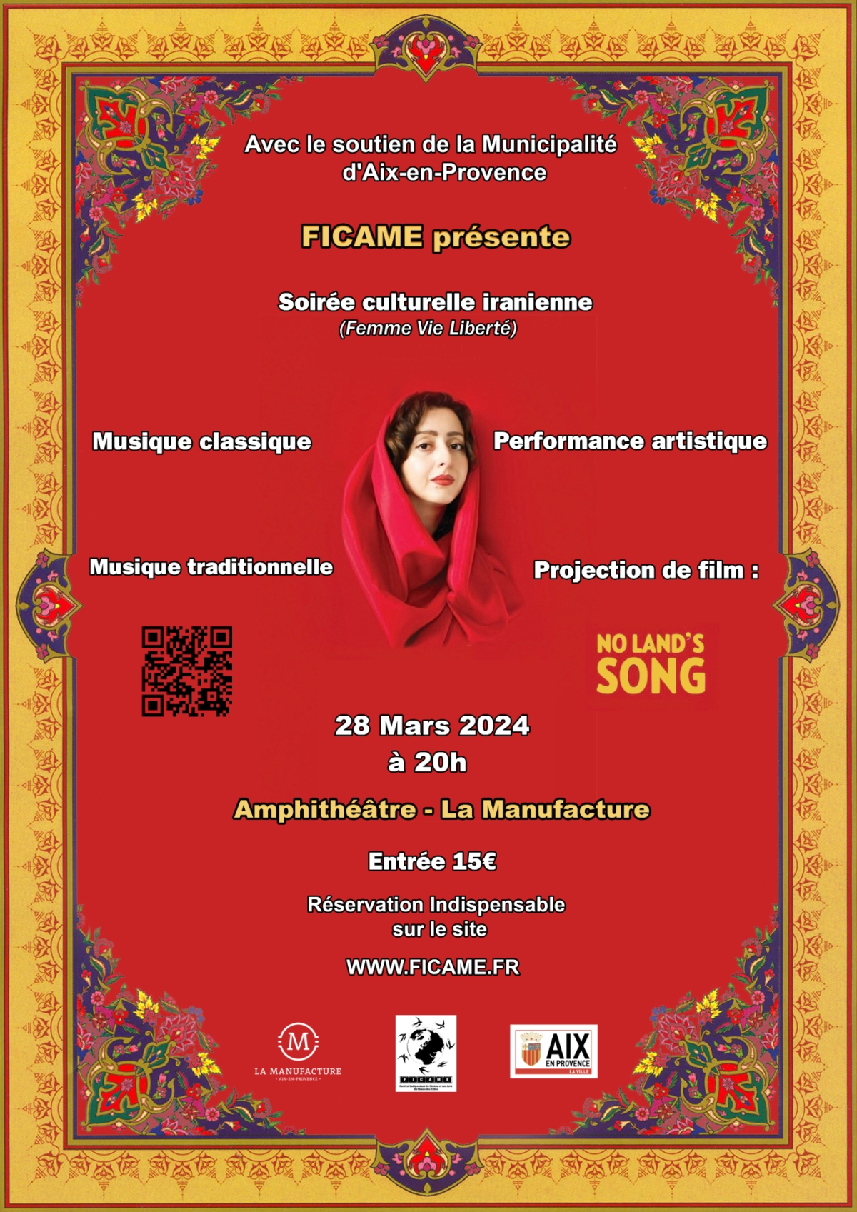 Musique classique et poésie, danse chorégraphiée pour la liberté des femmes iraniennes, musique traditionnelle iranienne, projection du Film de Ayat Najafi et Sara Najafi : No land’s Song